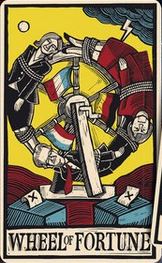 BiddyTarot.com: (General Meaning) The lesson of the Wheel of Fortune is that you must accept that there are always ups and downs in life. The Wheel represents karma and reminds you that ‘what goes around comes around’. The Wheel of Fortune speaks of a pivotal point in your life, where new options become possible. The appearance of the Wheel of Fortune shows that change is not only likely to happen, it is certain to happen, and soon. Source Link